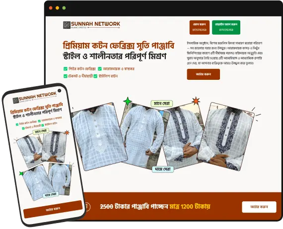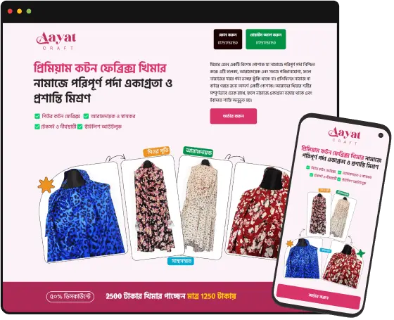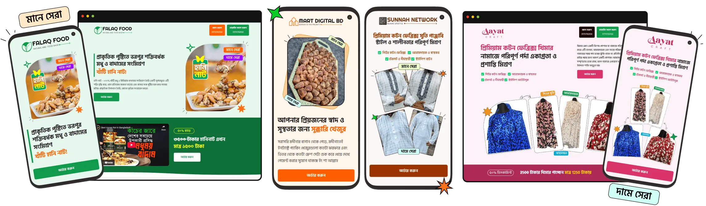 আমাদের ল্যান্ডিং পেজ ডেস্কটপ, ট্যাবলেট ও মোবাইল সব ডিভাইসে নির্ভুলভাবে কাজ করে, দ্রুত লোড হয় ও ইউজার এক্সপেরিয়েন্স উন্নত করে।