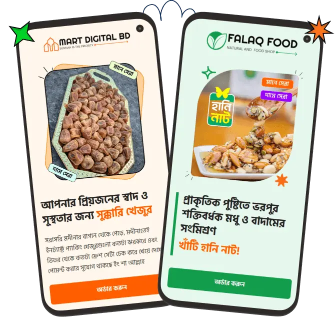 আমাদের তৈরি ল্যান্ডিং পেজ শুধু সুন্দরই নয়, এটি ইউজার-ফ্রেন্ডলি ও দ্রুত লোড হয়,এছাড়া ল্যান্ডিং পেজ তৈরি করি কনভার্সন মাইন্ডে রেখে যা গ্রাহকদের আকৃষ্ট করে ও কনভার্সন বাড়ায়।